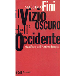 Quello che fa di Massimo Fini uno degli intellettuali italiani più interessanti di questi anni, che è poi lo stesso motivo che ne fa il più ostracizzato e temuto dai salotti televisivi, è la sua irresistibile antimodernità, quel suo punto di vista ipercritico sullo scoglio a cui la società occidentale, dopo un naufragio lungo qualche secolo che tutti chiamano crociera, è approdata. E proprio questo libro, pubblicato nel 2002 da Marsilio e non a caso sottotitolato “Manifesto dell’Antimodernità”, attraverso una lucida e sintetica analisi che svela l’essenza contraddittoria e grottesca dell’habitus mentale occidentale, rappresenta un ottimo punto di partenza per capire le ragioni di questa avversione. La convinzione di vivere in un leibniziano “migliore dei mondi possibili”, ma soprattutto la pretesa di esportarlo dovunque, trasformando l’altro in se stesso: è questo secondo Massimo Fini il Vizio oscuro dell’Occidente, quello che sta portando la nostra società - e a traino tutto il mondo verso una fine inevitabile, un’apocalittica guerra intestina i cui protagonisti non saranno più due differenti fazioni politiche, e neppure due differenti culture, bensì le due parti della futura (benché prosima) società globalizzata, da una parte una minoranza esigua, i sostenitori della folle corsa moderna, e dall’altra la maggioranza, disillusa, frustrata ed esasperata.