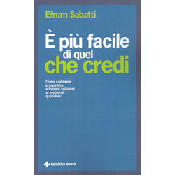 Assolutamente no! È un libro che ti aiuta a vedere gli errori di valutazione e di convinzione personale che si commettono e che contribuiscono a generare prima, e ad esasperare poi, tutti i più frequenti disturbi che affliggono molte persone: ossessioni, paure, circoli viziosi, autoconvinzioni penalizzanti… Leggendolo scoprirai come superarli cambiando prospettiva. Magari anche tu ti ritroverai a pensare che effettivamente, in alcuni casi, uscire da un problema “è più facile di quel che credi