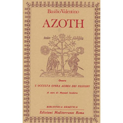 A cura di Manuel Insolera. Azoth ovvero L'Occulta Opera aurea dei filosofi esce nel 1613, contemporaneamente in tedesco e in latino, presso l'editore Johann Bringern di Francoforte. L'edizione tedesca viene attribuita dallo stesso editore ad un "diligente amatore della materia", quella latina appare come l'opera di certo Basilius Vicentinus, tradotta da Georgius Beatus. La prima attribuzione dell'Azoth a Basilio Valentino è rintracciabile nella traduzione francese di David Laigneau pubblicata nel 1624 a Parigi. Basilio Valentino, il cui nome allegorico ben si presta ad essere ricordato come "potenza dell'alchimia", divine e rimane ben presto leggenda o verità pseudonima di un monaco benedettino di Erfurt del XV secolo. Nel testo che presentiamo, tradotto dall'edizione latina riproposta nelle collezioni tradizionali come il Theatrum chemicum o Bibliotecha Chemica Curiosa, egli si disvela di fatto come coerente convergenza di un'alchimia ormai corredata dalla pratica paracelsica e di un'ideologia rosacruciana con le sue note asprezze riformiste e antiromane. Il trattato è diviso in due parti. La prima, in forma di dialogo, sposa le tesi di un abbandono al fervore sapienziale, esortando ad un'esercitazione riflessiva che partendo dal "Libro della Natura", contrappunti con ragionata modestia il desiderio al compimento della fede.