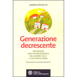 Quella di chi oggi ha trenta-quarant’anni è la prima generazione che non avrà di più dei propri genitori. Ma non avere di più, non significa non potere fare di più, né tanto meno non avere di meglio. Del resto è proprio questa generazione a parlare con convinzione di sostenibilità o decrescita, sia per una visione diversa della vita e del mondo, sia perché la limitatezza delle risorse appare particolarmente minacciosa per chi ha più anni da trascorrere su questo piccolo pianeta. Ciò non significa ripudiare il «progresso» o rifiutare quanto abbiamo, ma diventare consapevoli del fatto che non si può più produrre, consumare e sprecare come si è fatto finora.