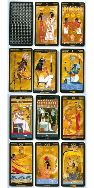 Luce d’Egitto, enigmatica Regina la cui bellezza si è tramandata attraverso millenni: è la splendida Nefertari. Attraverso i suoi occhi senza tempo questi preziosi Tarocchi introducono ai misteri della Valle del Nilo. Stampati con impressioni in oro pregiato, sono il più ricco mazzo di Tarocchi Egiziani mai creato. Impressioni in oro a caldo.