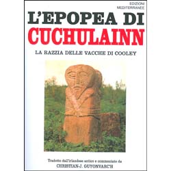 Entra in guerra, animato dalla ferg, la furia guerriera che può far ribollire l’acqua in una tinozza, col suo corpo teso come l’arco che attraversa il cielo dopo la pioggia, lo sguardo dardeggiante, brandendo l’arma invincibile, il ‘giavellotto-folgore’. Ma la Táin Bó Cúailnge narra qualcosa di più di una semplice razzia. Racconta la nascita della terra d’Irlanda, ci fa vedere i suoi villaggi, le coste, le insenature, le sue colline e i suoi pascoli. È una testimonianza che collega i Gaeli agli antichi guerrieri-pastori venuti dalle terre oltre i Carpazi. Cuchulainn, dopo aver trionfato sui suoi nemici, muore tradito dalla magia degli stregoni. Con lui scomparirà il mito, cancellato dall’arrivo in Irlanda dei primi missionari e dell’ultimo dei druidi, san Patrizio.