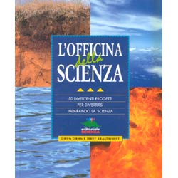 Si comincia con la preparazione del diario dell’officina che ci accompagnerà nella nostra esplorazione. Poi subito sulla terra con la costruzione del capanno d’osservazione, del periscopio, il muffario, il vermicaio, il radioscopio e così via; l’aria ci porta ad indagare i suoni con le campane e lo xilofono, a vedere con il fonovisore e il nuvoloscopio, a costruire la mongolfiera, l’aquilone a reazione, l’elicottero e così via; per l’acqua onde e tornadi in bottiglia, ministagno, mulino ad acqua, lente e motoscafi e così via; per il fuoco l’orologio solare, il forno solare, la pietra lucente, l’eliobussola, il calibro stellare e così via. Un’officina completa, di grande successo, un libro da leggere e con cui giocare e imparare che non finisce mai di piacere e meravigliare.
