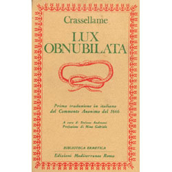 L’ode alchemica Lux obnubilata è una delle migliori espressioni dell’Alchimia quale “magia naturalis”. Si dice questo perché il manierismo baroccheggiante dell’ode considera la storia possibile e totale della “ricreazione” del mondo, determinando, quindi, nel lettore, la precisa consapevolezza delle sue possibilità operative. La forma poetica non è nuova all’Alchimia: basti citare, per tutti, Cecco d’Ascoli, ma la fortuna del Crassellame, nel corso dei tempi, è forse proprio da attribuirsi alla volontà, seppure sempre di “maniera”, di descrivere il mondo macrocosmico quale evidente correlato di quello microcosmico.