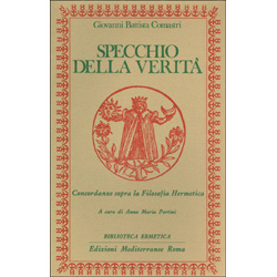 Lo “Specchio della verità, concordanze di Giovanni Battista Comastri sopra la filosofia Hermetica” è una “silloge” alchemica stampata a Venezia nel 1683, dedicata a Cristina di Svezia. Il tratto dell’epoca: un manierismo che non sa decidersi tra scienza e analisi mitologica del mondo è il protagonista effettivo di queste concordanze, dove lo stile alchemico, notoriamente denso di metafore, accoglie un’erudizione congestizia, ma condotta secondo un metodo marcatamente scientifico, post-paracelsico.