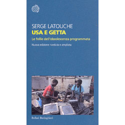 Di questa illimitatezza malata, che ci avvolge sempre più nella spirale di iperproduzione, turboconsumo e immane scarto, Serge Latouche è l’oggi l’accusatore più conseguente. Con la sua capacità di infilzare le storture di un’economia di catastrofe, mette in sequenza gli antecedenti storici e fraudolenti dell’«usa e getta», ne smaschera la logica simbolica e indica una via d’uscita: una prosperità senza crescita, prospettiva frugale ma non pauperista che sappia decolonizzare la mente dall’imperialismo delle merci, e riprenda il passo umano della durevolezza, della riparabilità e del riciclaggio.